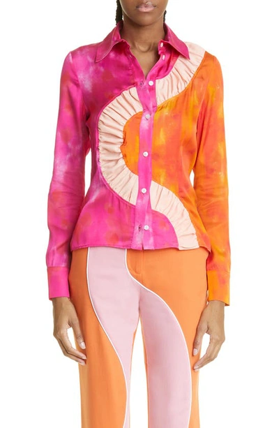 Kati Ruched Button-front Shirt In Pink/orange