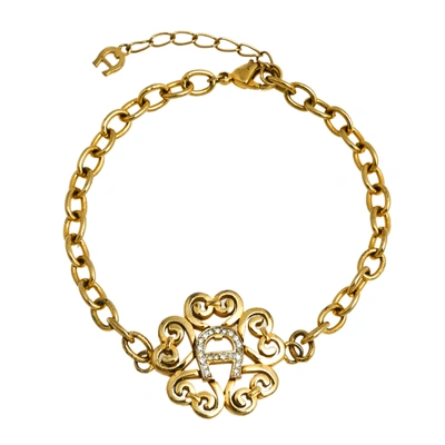 Pre-owned Crystal Logo Gold Tone Chain Bracelet