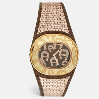 Pre-owned Brown Rose Gold Plated Stainless Steel Leather Rabello Due A39200 Women's Wristwatch 43 Mm