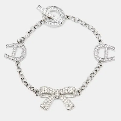 Pre-owned Logo Bow Crystals Silver Tone Bracelet