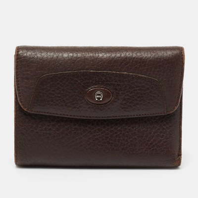 Pre-owned Brown Leather Logo Flap Trifold Wallet