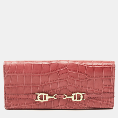 Pre-owned Pink Croc Embossed Leather Continental Wallet
