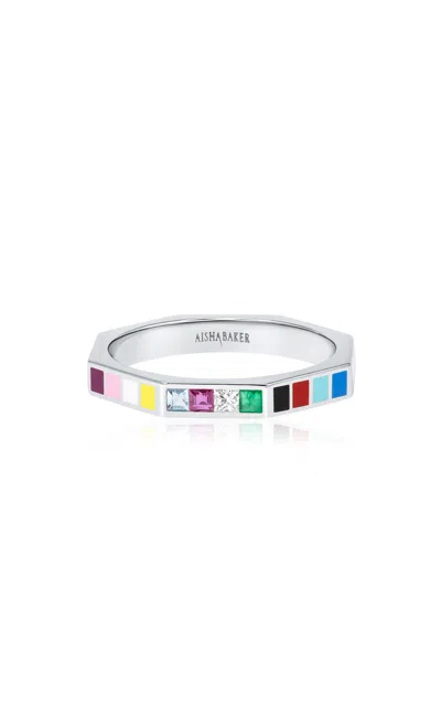 Peony Symphony 18k White Gold Multi-stone Ring In Blue