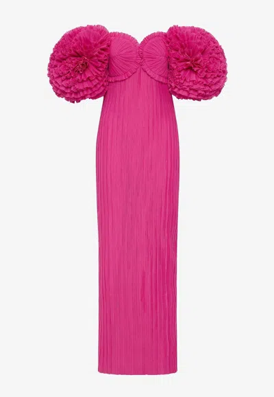 Crystallise Off-shoulder Plisse Gown In Fuchsia