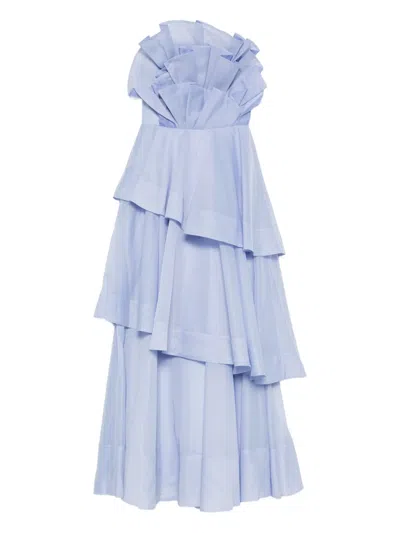 Behold Strapless Ruched Floral-print Cotton-poplin Gown In Blue