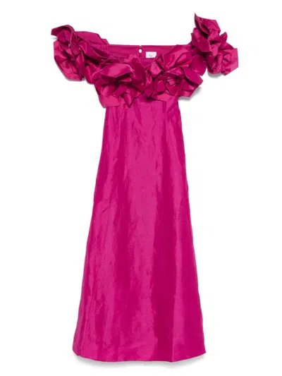 OLEA 荷叶边花卉超长连衣裙