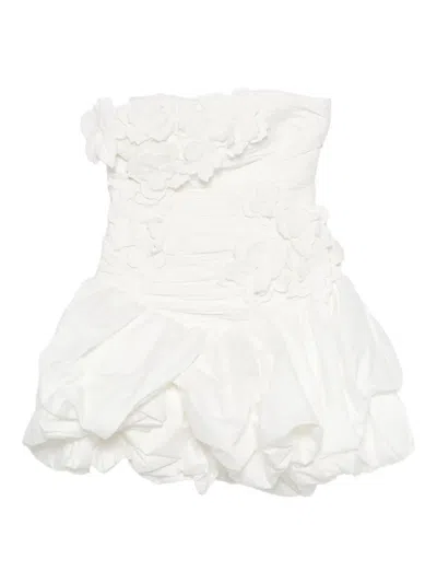Behold Strapless Ruched Floral-print Cotton-poplin Gown In Blue