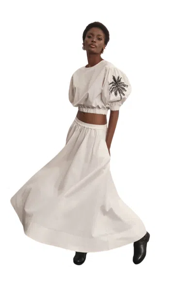 Women's Long Wheel Skirt With Elastic Waist In White