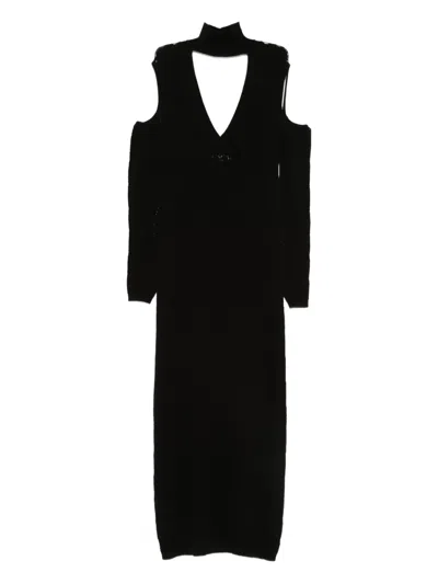 Women's Long Ribbed Knit Dress Neck On Back In Black