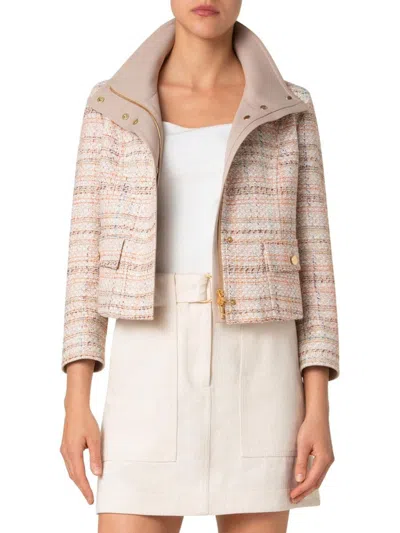 Women's Short-sleeve Silk-blend Jacket In Blue