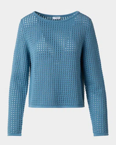 Chunky Cotton Mesh Boatneck Sweater In Medium Blue