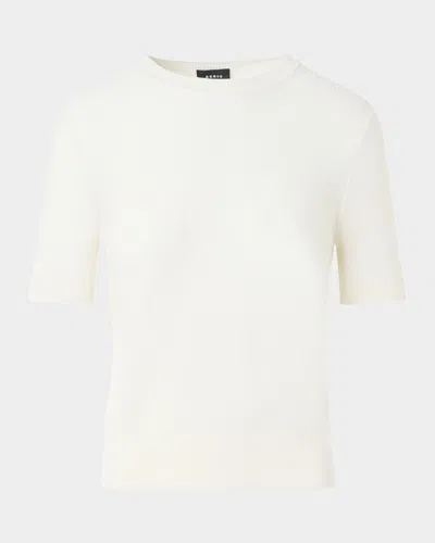 Silk-cotton Pointelle Knit Short-sleeve Sweater In White