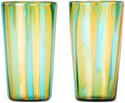 Blue & Yellow Small Augusta Glass Set In Aquamarine/mustard