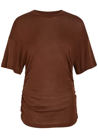 Ruched Fine-knit T-shirt In Brown