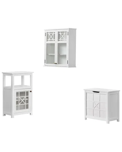 Derby 3pc Bathroom Set With Wall Mounted Bath Cabinet, Hamper, And Floor Cabinet