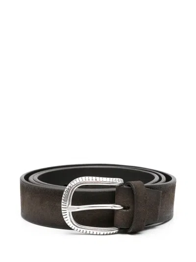 Vintage Effect Suede Belt In Burnt Color In Brown