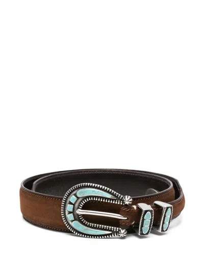 Hammered Leather Belt With Chiselled Buckle In Brown