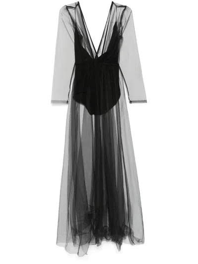 X Lia Aram Tulle Maxi Dress In 黑色