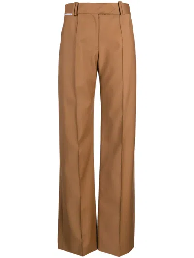 Asymmetric Wide-leg Trousers In Brown