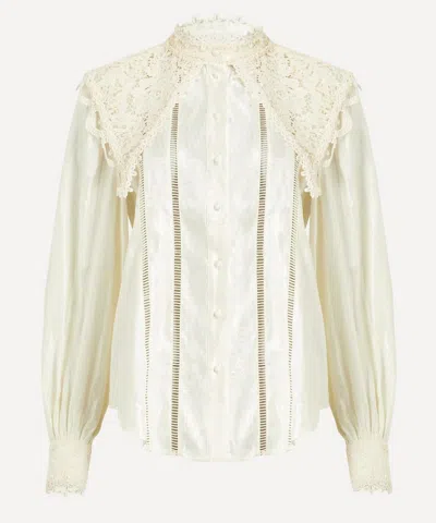 Puff Sleeve Embroidered Blouse With Tie Neck In White