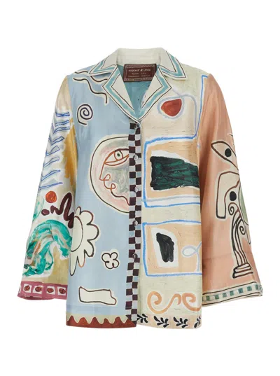Michelle Multicolor Shirt With Classic Collar And All-over Geometric Motif In Linen Woman
