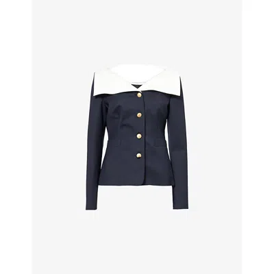 Wool Blazer With Contrasting Collar And Gold Buttons In Blue