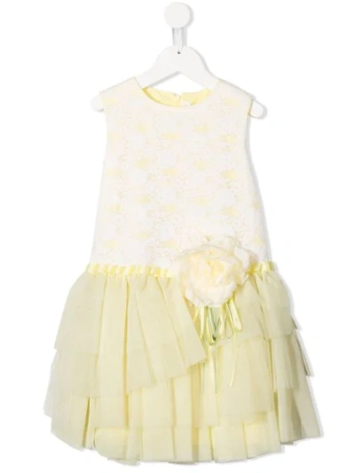 Kids' Tulle Detail Sleeveless Dress In Yellow