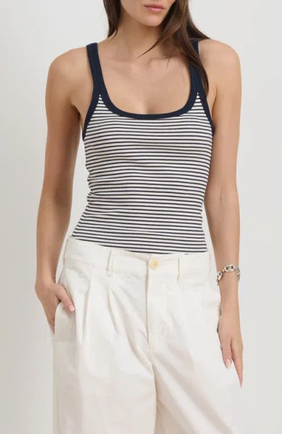 Stripe Stretch Cotton Rib Tank Top In Gray
