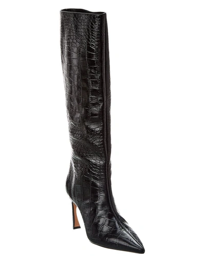 Kyra 85 Patent Croc-embossed Leather Knee-high Boot In Black
