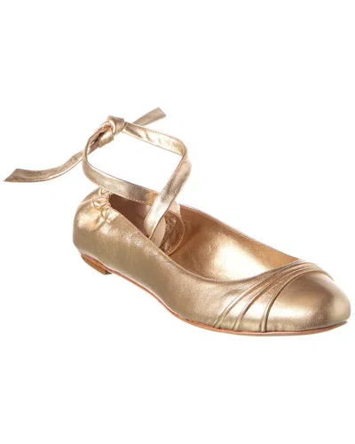 Slim Clarita Bow-strap Fishnet Ballerina Flats In Golden