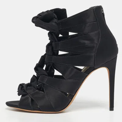 Pre-owned Black Satin Layla Gladiator Sandals Size 38.5