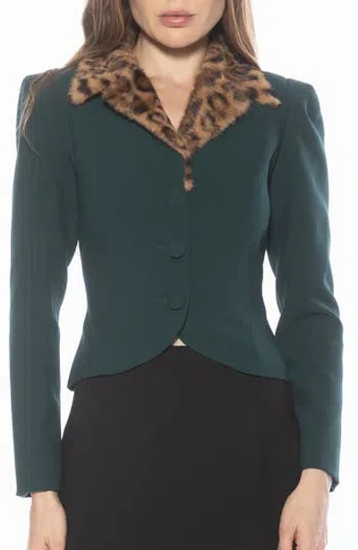 Sabrina Faux Fur Notch Collar Blazer In Green