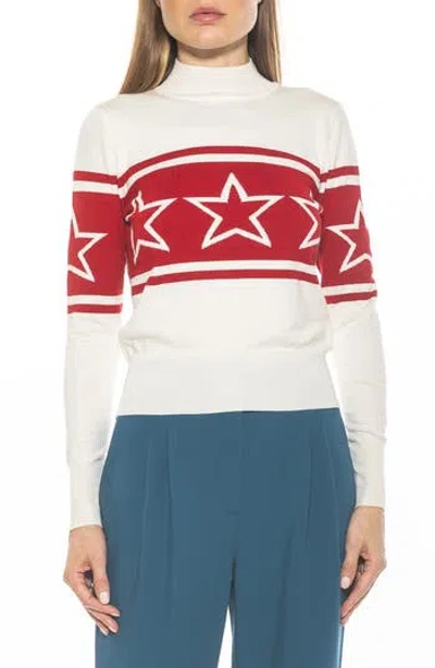 Lisa Star Mock Neck Sweater In Ivory Red