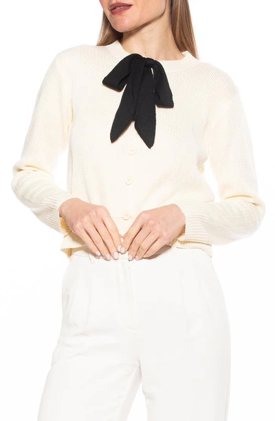 Calix Tie Neck Button Front Cardigan In Ivory