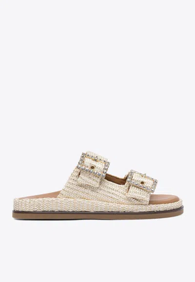 Greta Crystal Buckle Raffia Sandals In Neutral
