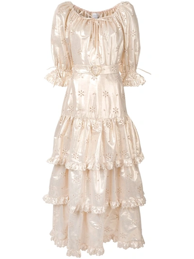 Metallic Flower Embroidered Gown In Gold