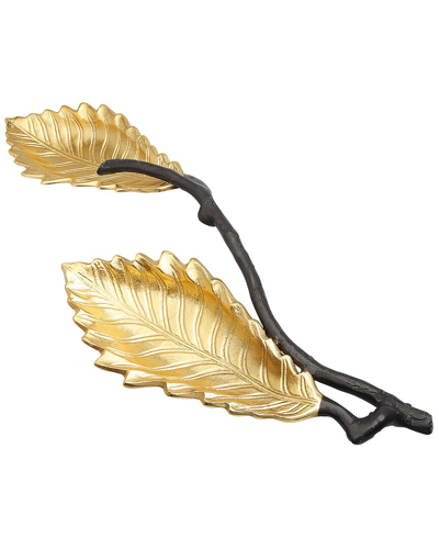 15in Gold White Porcealin Leaf Relish Dish With Gold Rim