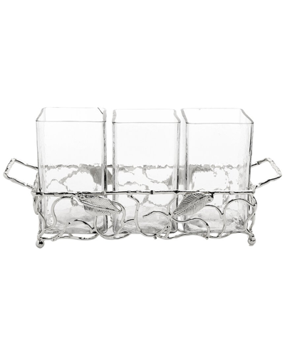 Silver Leaf Cutlery Holder With Hammered Glass Inserts