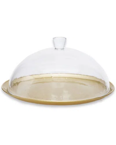 Set Of Four 11in Milky Glass Dinner Plates With Flashy Gold Design In Multi