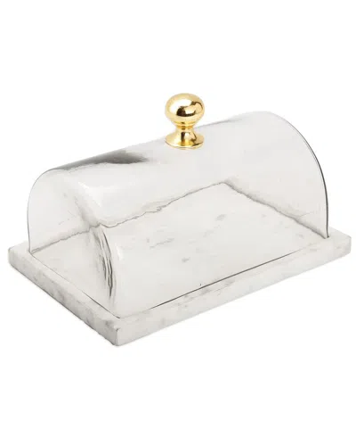 11in White Porcelain Cake Dome With Gold Design