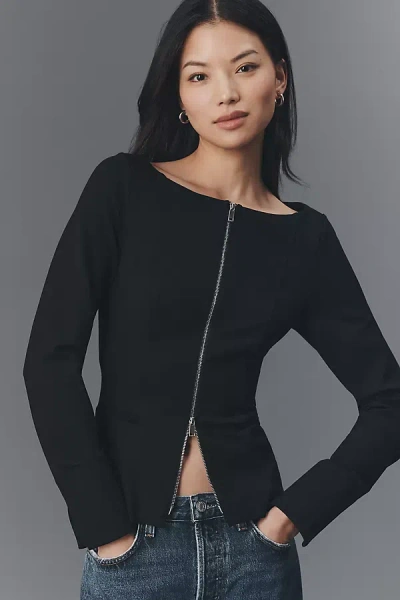 Caesar Zip-up Ponte Top In Black