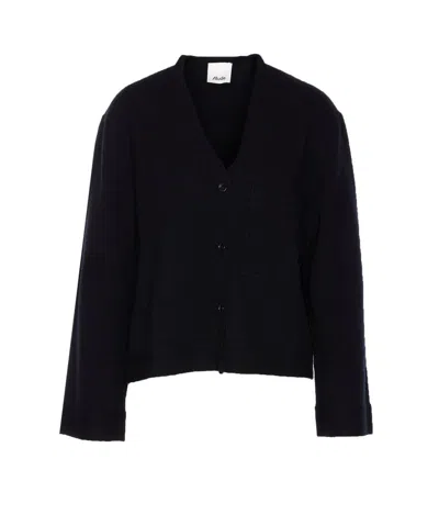 Ruffle-edge Virgin Wool-cashmere Cardigan In 黑色