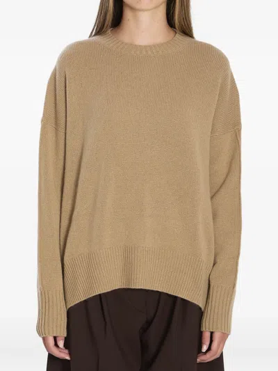 Crew-neck Sweater With Three-quarter Sleeves In Neutral