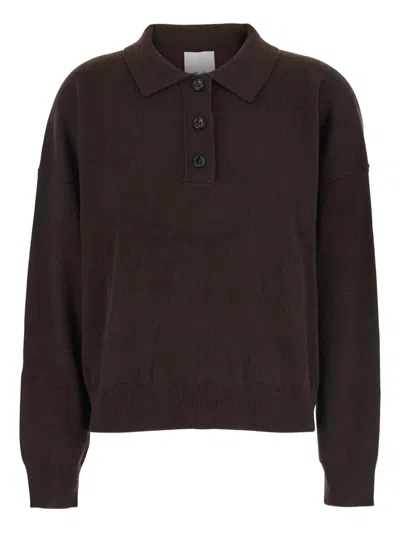 Brown Polo Shirt With Classic Collar And Ribbed Trims In Wool Woman In Multi