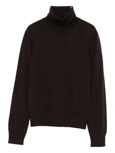 Classic Turtleneck Sweater In Rich Brown Merino Wool In Black