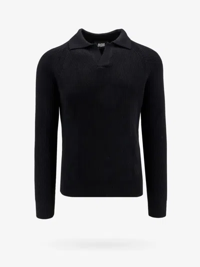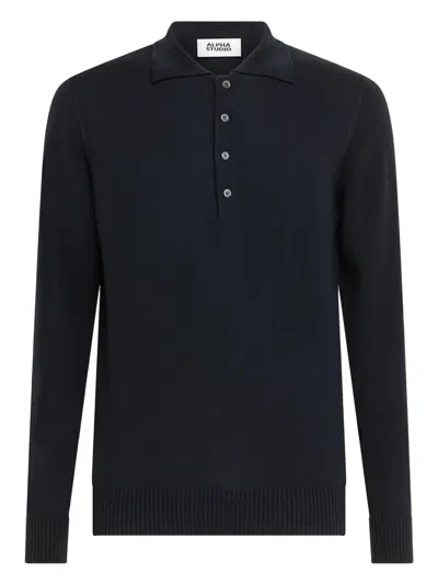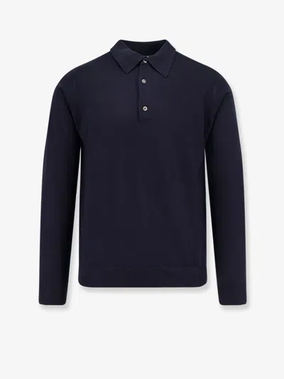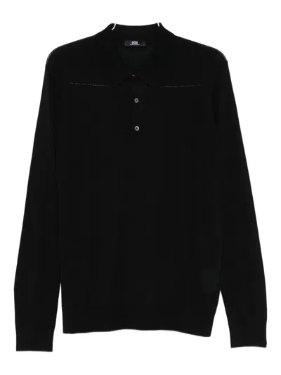 Ribbed Extrafine Merino Wool Polo Shirt In Black