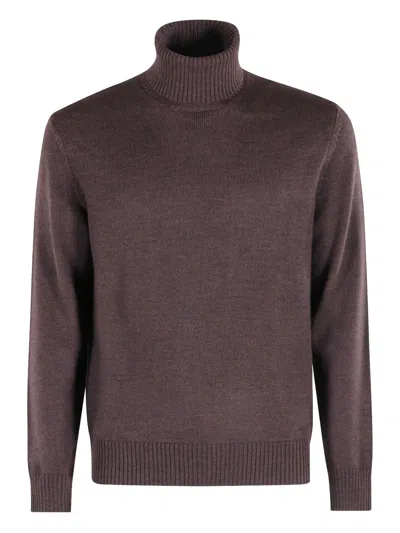 Dark Brown High Collar Sweater In Gray
