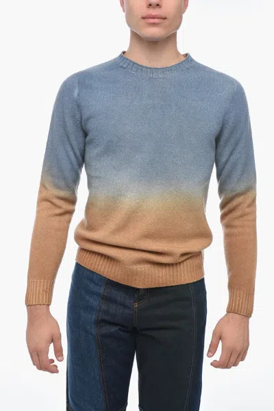 Crew Neck Cashmere Blend Sweater With Degradè Bottom In Blue