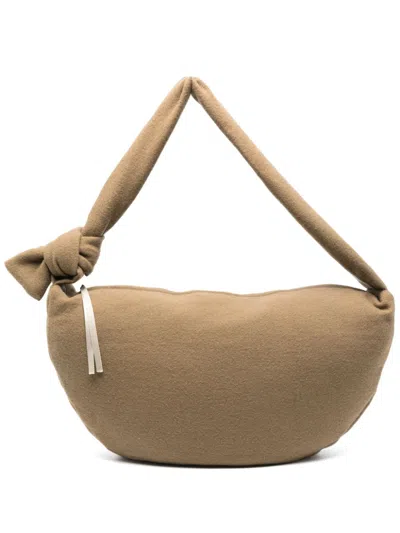 Brown Wool Bag With Unique Knot Detail In Military Green