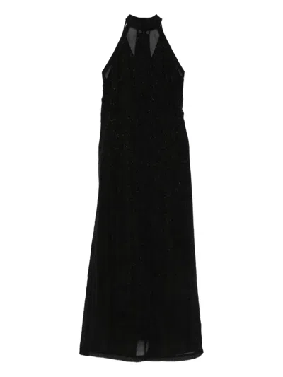 挂脖开衩超长连衣裙
